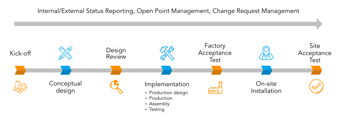 INOVA appoints a project manager to look after your project and a support team of senior mechanical, electrical and software engineers. The project manager is your central point of contact, ensuring efficient communication as well as a successful and timely implementation of the project.